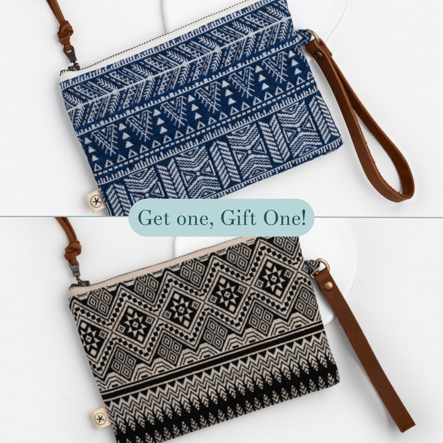 Celebrate the everyday adventure of friendship with the Amara Wristlet Friendship Set—one in charcoal and one in indigo, crafted with care by artisan women in Thailand. The simple yet statement-making design pairs a refined leather strap with artisan-woven patterning, so whether you carry coffee, phone, or moments together, it does so with grace. Gift one to your friend, keep one for yourself, and each time you reach for it, remember you’ve carried hope together. Every purchase supports women experiencing freedom from exploitation and helps them build life-changing careers.