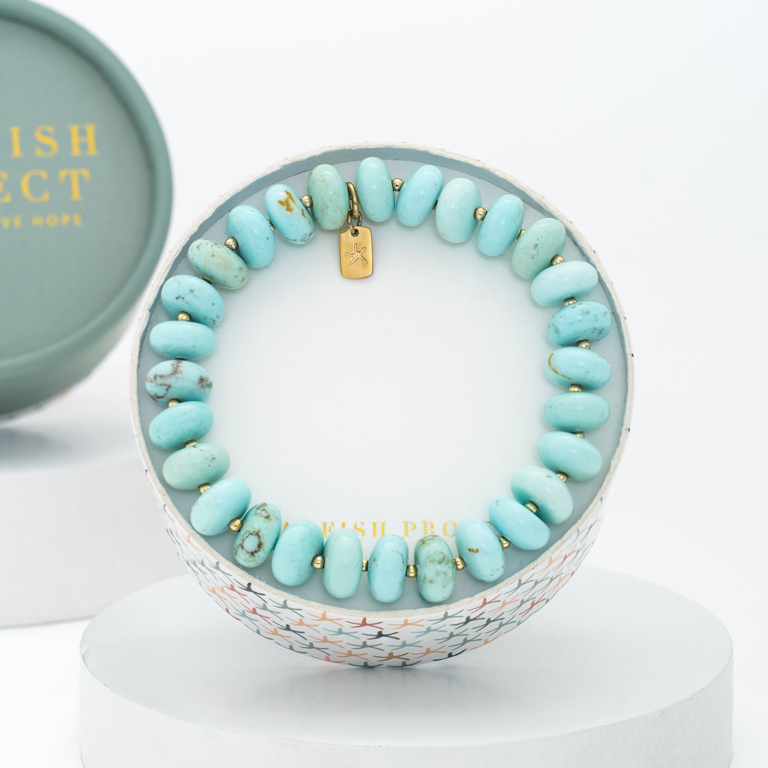 Bold, dreamy turquoise beads come together in this statement bracelet designed to feel calm, confident, and beautifully grounded. This hand beaded bracelet brings effortless impact while remaining easy and comfortable to wear. Style it as a standalone statement or pair it with gold bangles for a layered look that feels strong and intentional. Each bracelet represents meaningful employment (like beading your bracelet!) and the opportunity for women to build a brighter, more secure future.