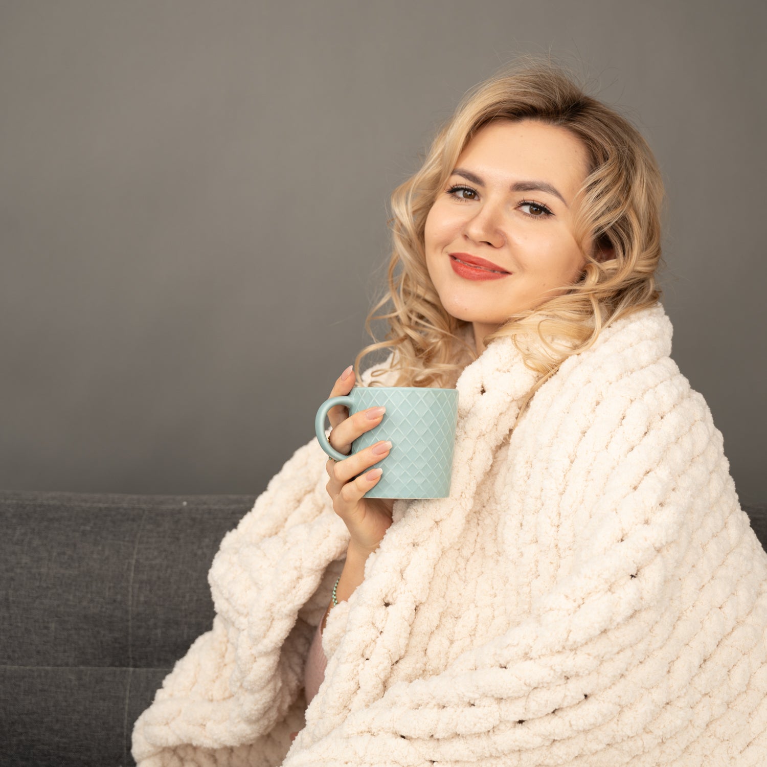 Celebrate the warmth of connection with the Blanket Friendship Set—one in Slate Gray and one in Creamy Beige, hand-knit with care by survivor artisans embracing new beginnings. Each generously sized, chunky blanket blends cozy comfort with modern elegance, making it perfect for quiet evenings, shared moments, or a thoughtful gift. Gift one to your friend, keep one for yourself, and every time you wrap up in its softness, remember the hope you share. Every purchase supports women on their journey to freedom and helps them build life-changing skills and independence.