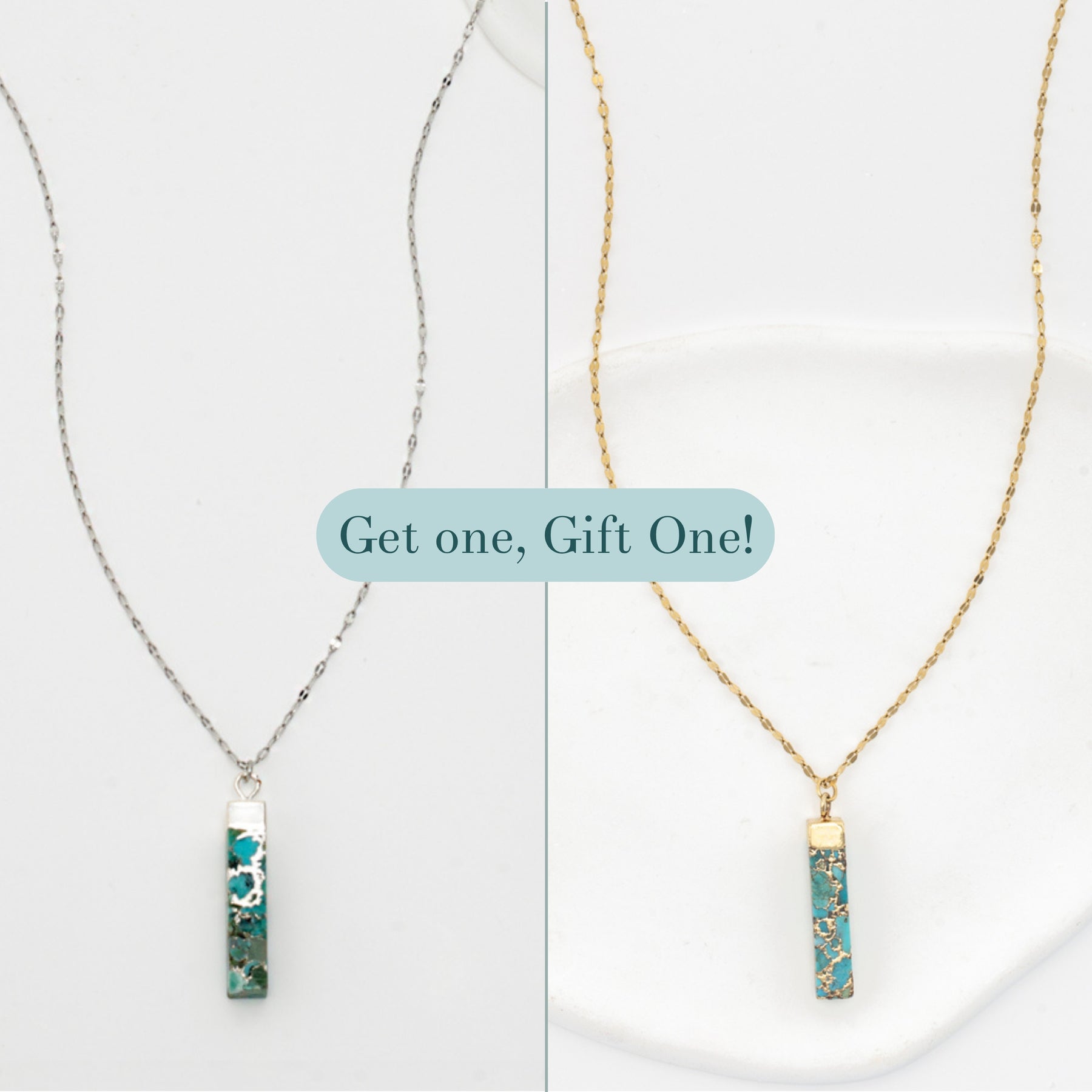 Celebrate your extraordinary friendship with the Brayden Friendship Set. This duo includes one radiant turquoise-pendant necklace in gold and one in sleek silver—each featuring a natural turquoise stone on adjustable chain. Just like the unique gemstone in each piece, your friendship is beautifully one-of-a-kind. When your friend wears hers and you wear yours, you’re sending a signal of solidarity, style and purpose. With every purchase, you are supporting survivors of exploitation and offering a gift that doesn’t just look good—it does good. Share the sparkle, wear it together, and let your bond shine.