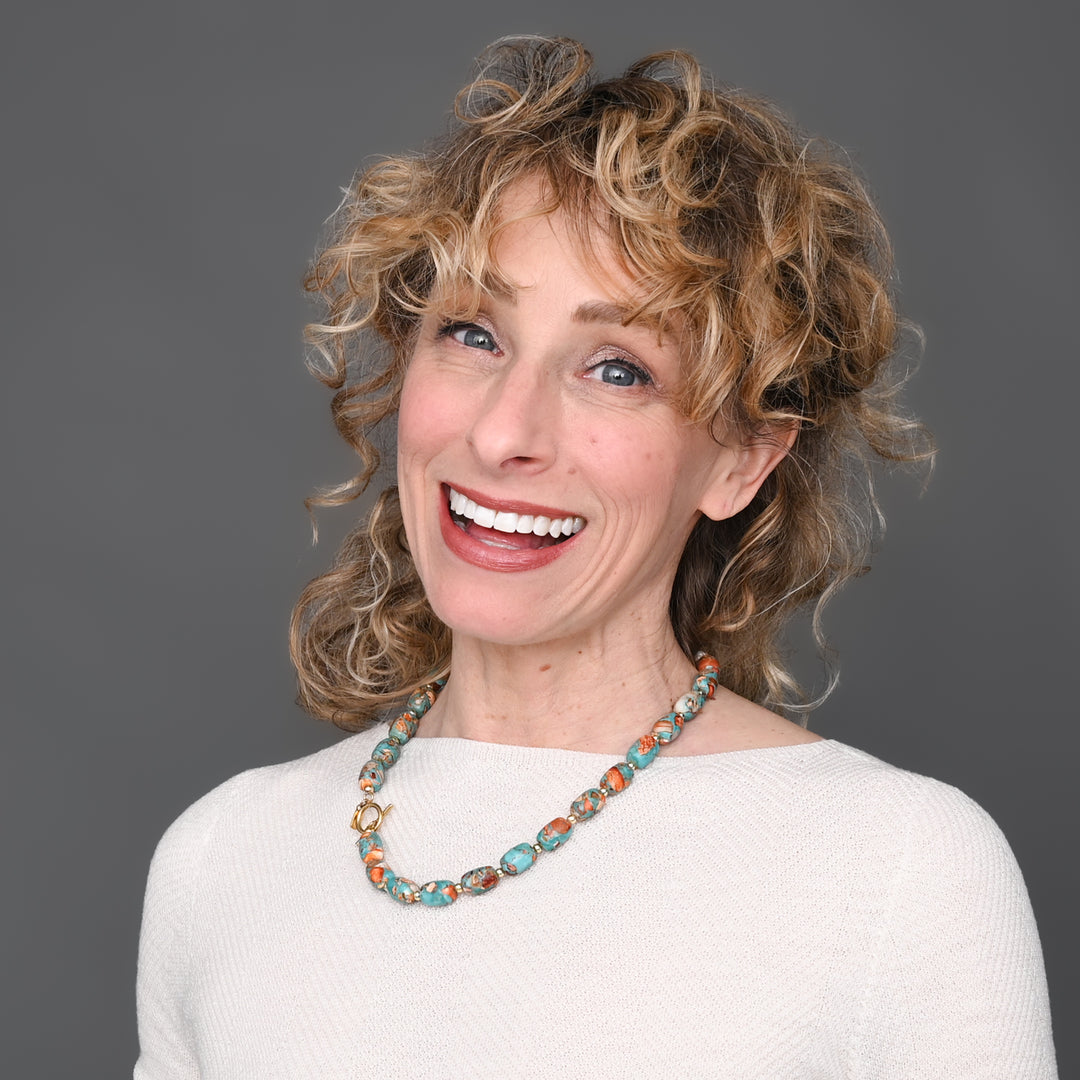 Inspired by the beauty of a mountain sunrise, the Sierra Bloom Gift Set pairs a hand-beaded necklace and phone wrist strap crafted from vibrant turquoise emperor stone. Designed for both style and purpose, each piece is strung by survivors at Starfish Project as they begin their journey to freedom. As she opens this stunning set, she’ll be reminded of the beauty of new beginnings—and the hope your gift makes possible.